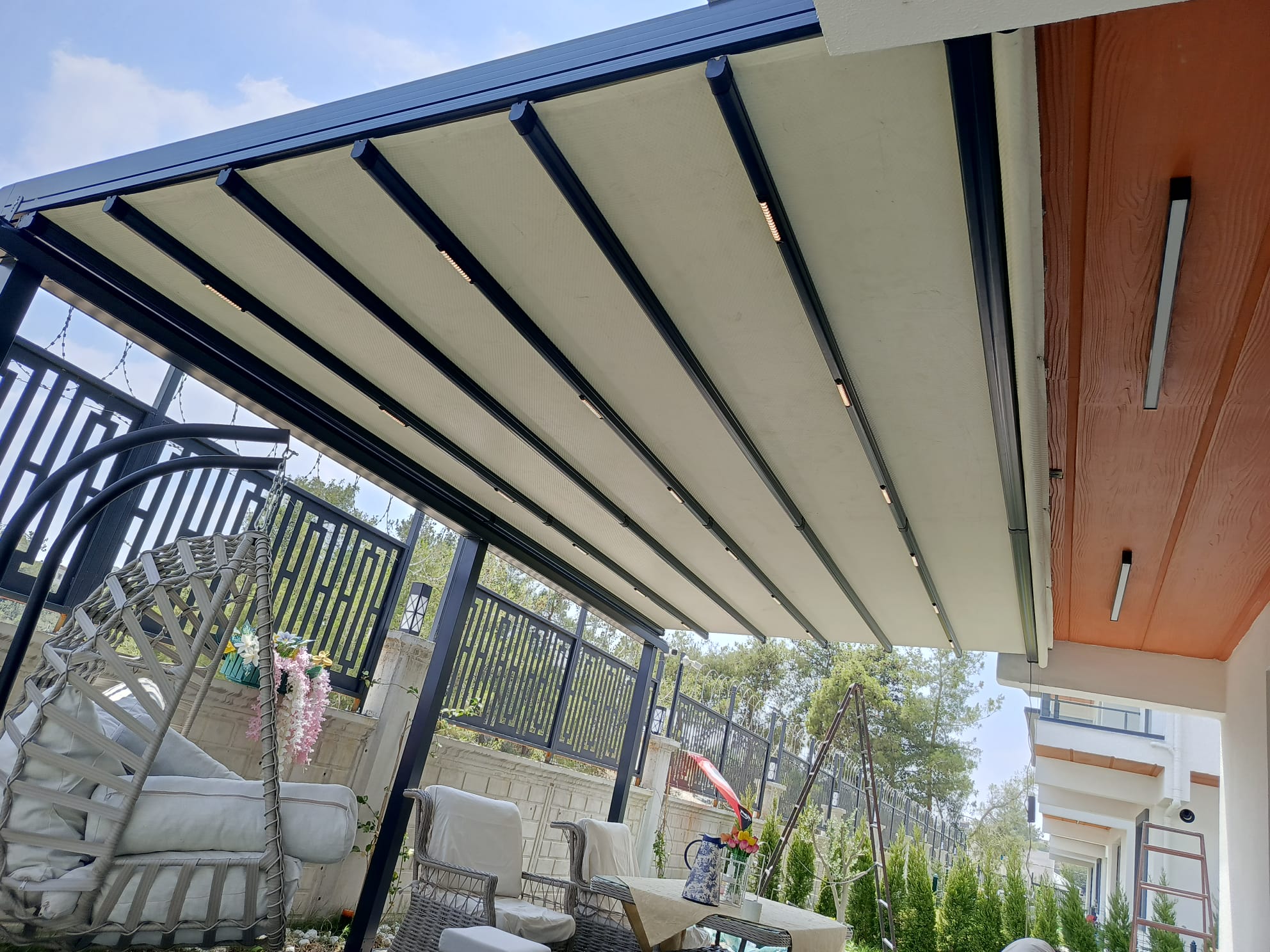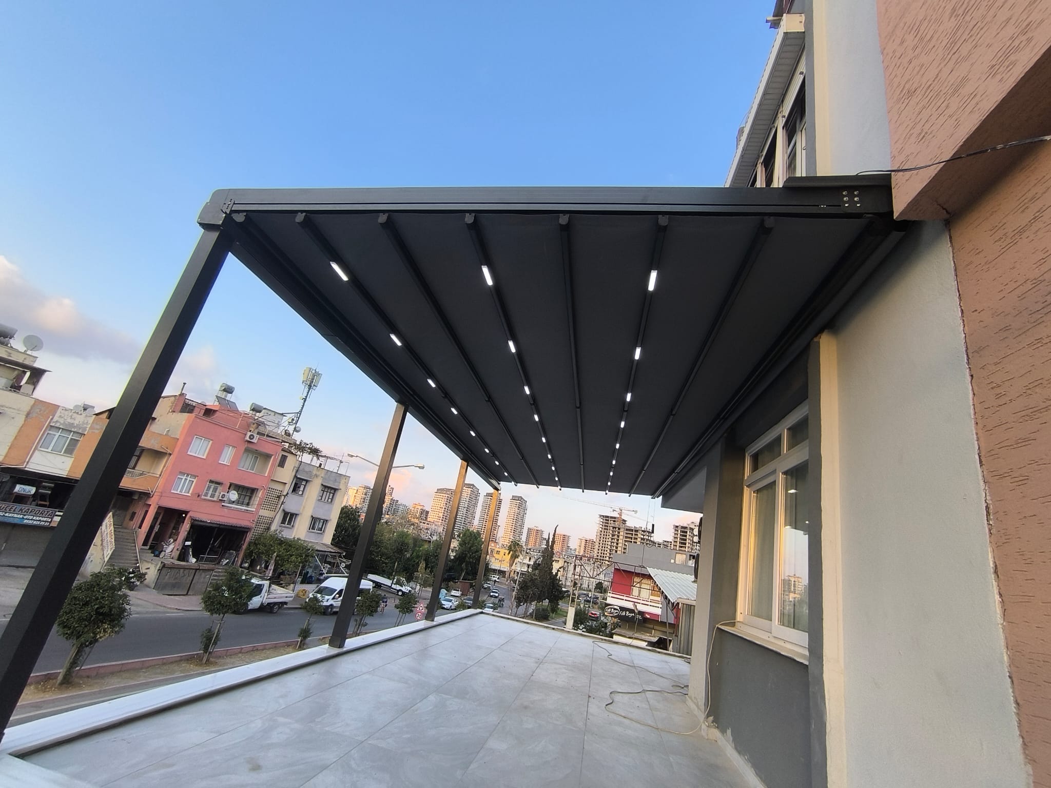 Pergola tenteler, özellikle Adana iklimindeki yoğun güneşin zararlı UV ışınlarından, şiddetli yağmurdan ve rüzgardan tam koruma sağlayarak açık hava keyfinizi kesintisiz yaşamanıza olanak tanır. Yüksek kaliteli iskelet ve kumaş yapısıyla mekanınıza uyum sağlar ve uzun ömürlü bir yatırım sunar. Kullanıcı dostu tasarımı sayesinde uzaktan kumandalı otomatik açma-kapama seçenekleri ile kullanım kolaylığı sağlar.